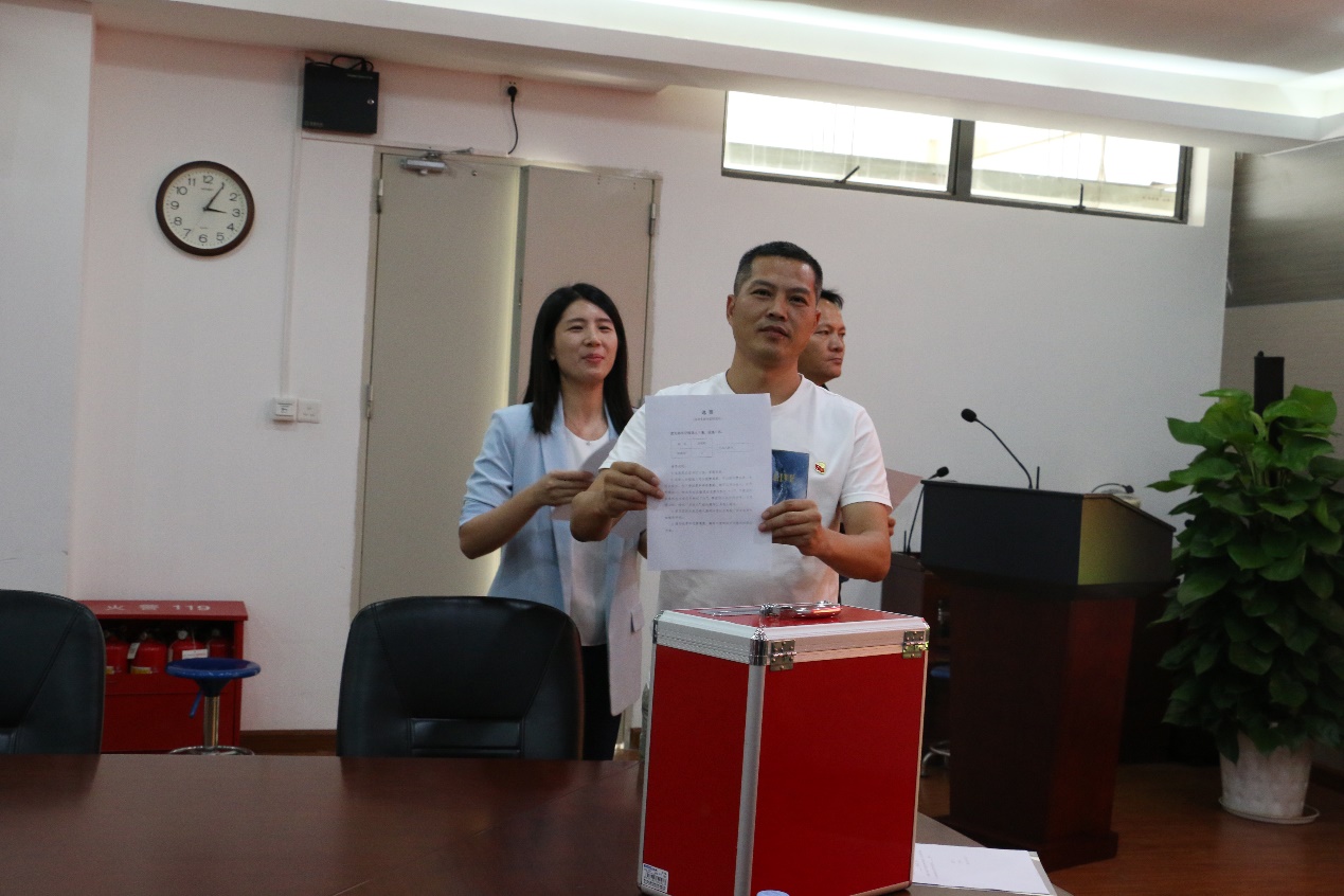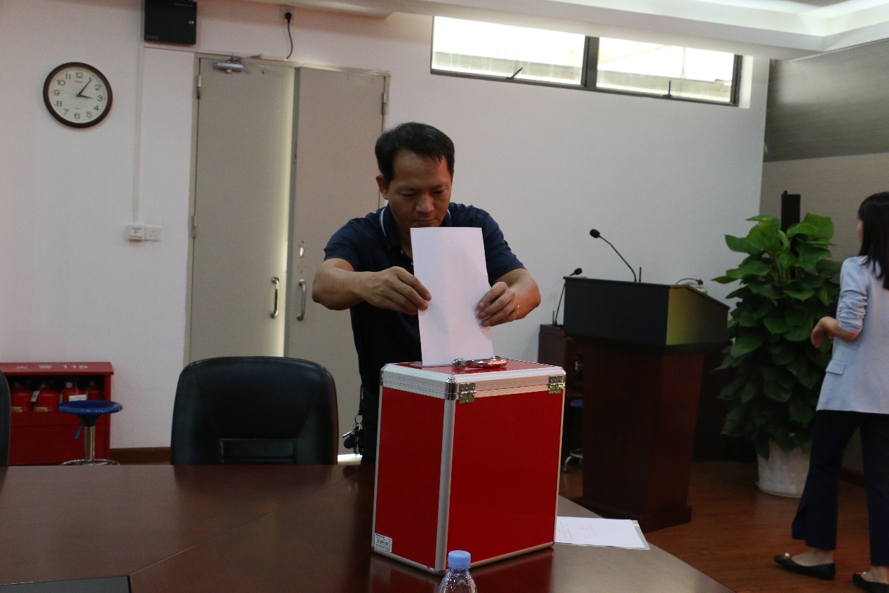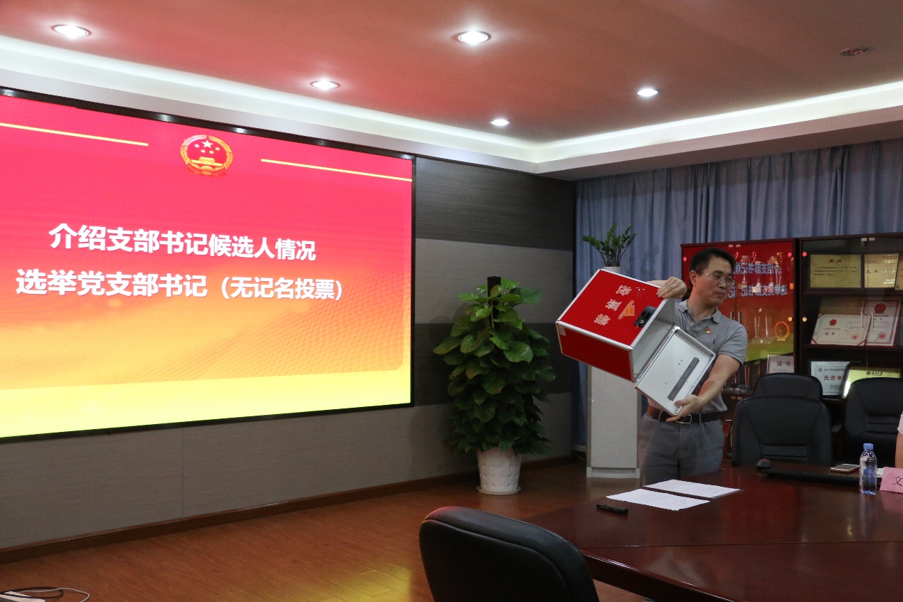 随后,主持人介绍支部书记候选人情况,在宣读选举办法和监票人、计票人名单后,选举仪式正式开始,基金会党支部三名党员以无记名投票方式选举林峰智同志为第一届党支部书记。