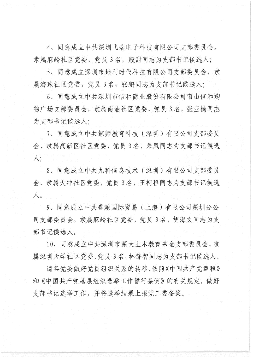 (3)充分酝酿确定基金会第一届党支部书记候选人,经过党支部筹备组反复研究、酝酿,并经中共深圳市南山区粤海街道党工委党委审议。