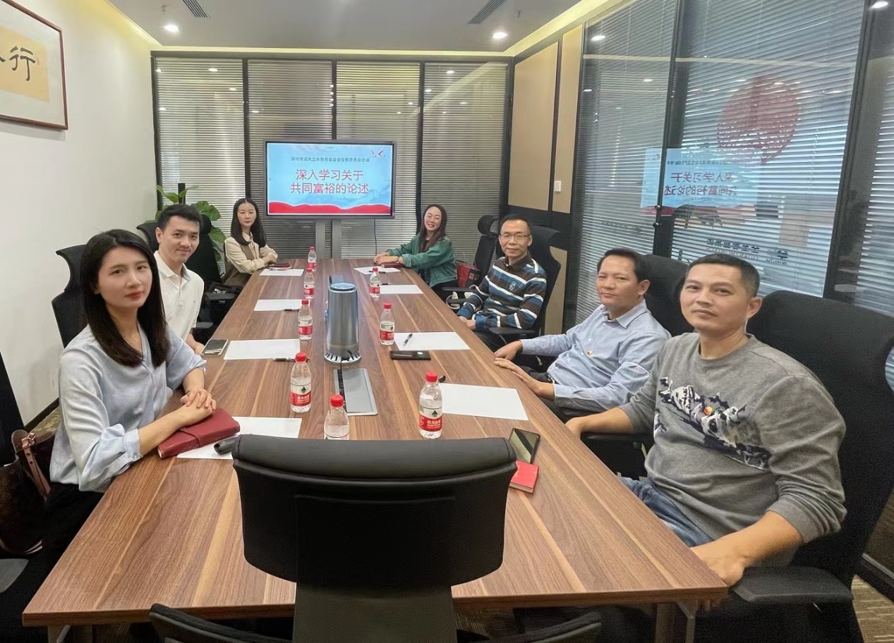 党支部书记林峰智带领与会人员学习了中共中央关于共同富裕的一系列论述,其中大家深刻认识和领会到了习近平总书记强调的 “要坚持以人民为中心的发展思想,在高质量发展中促进共同富裕” 的重大意义。