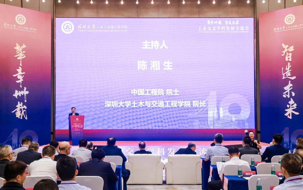 深圳大学党委书记、中国工程院院士李清泉,深圳大学校长、中国科学院院士毛军发,深圳大学深地科学与绿色能源研究院院长、中国工程院院士谢和平,深圳大学城市智慧交通与安全运维研究院院长、中国工程院院士杜彦良,深圳大学智慧城市研究院院长、中国工程院院士郭仁忠,深圳大学本原设计研究中心主任、中国工程院院士孟建民,深圳大学副校长周辉等出席本次大会。我院院长、中国工程院院士陈湘生主持会议。