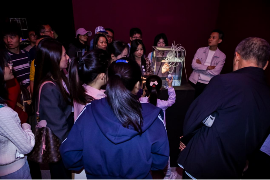 在【问题的问题】AI与机器人主题的科技艺术展览中,校友们、师生们穿梭于光影与科技交织的装置间,感受艺术家对科学技术的深刻叩问,引发大家对科技与创意融合的思考。