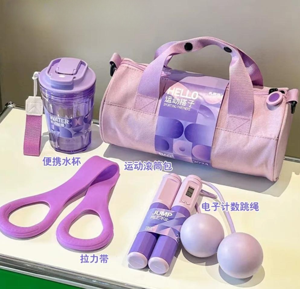 环校跑前十名选手每人可获得一个运动大礼包(含运动滚筒包+便携水杯+电子计数跳绳+拉力带)。