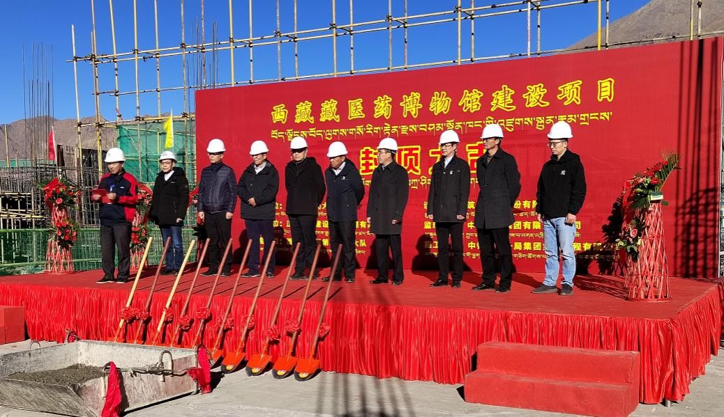 图为易峰参加西藏藏医药博物馆建设项目封顶仪式(后排左一)