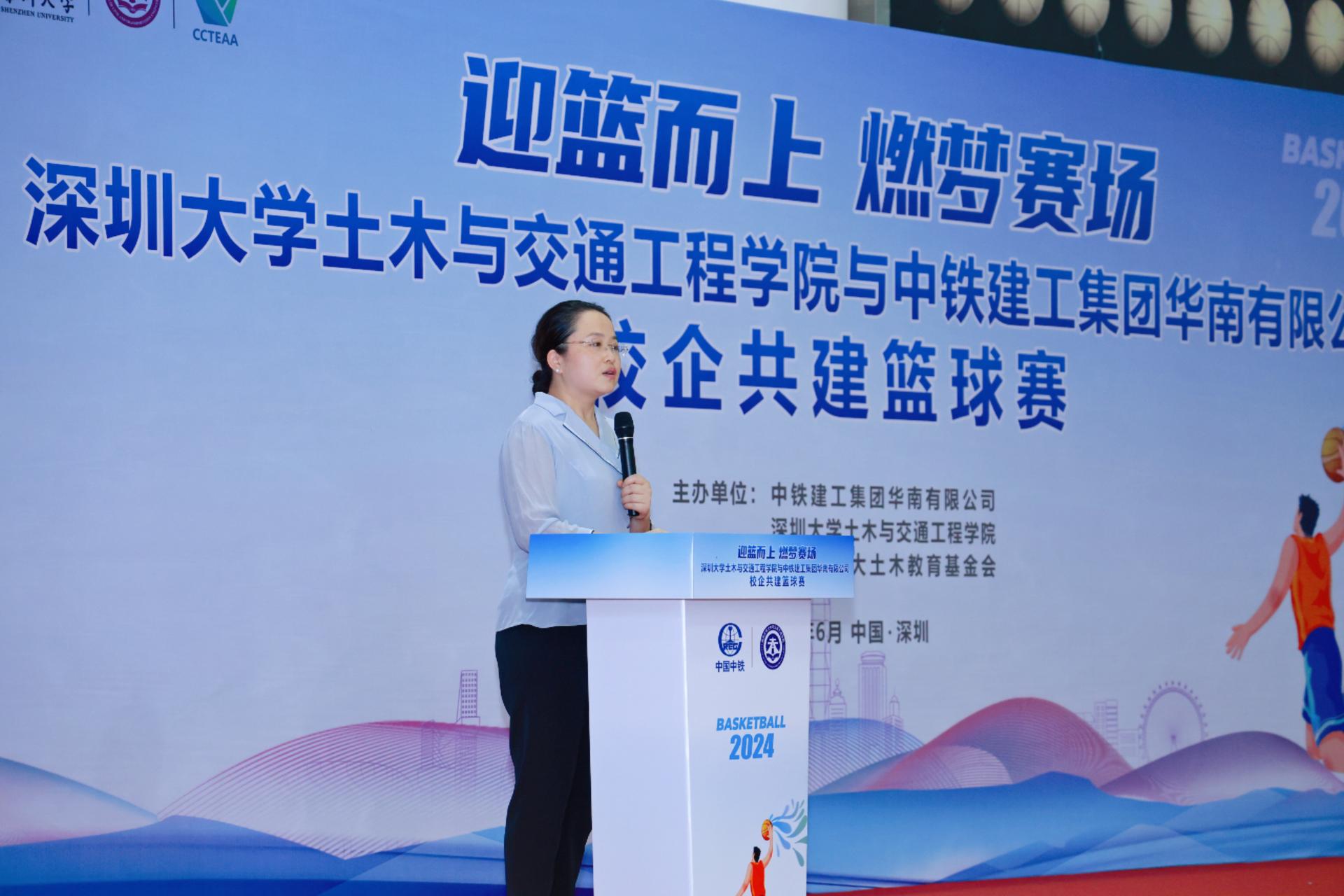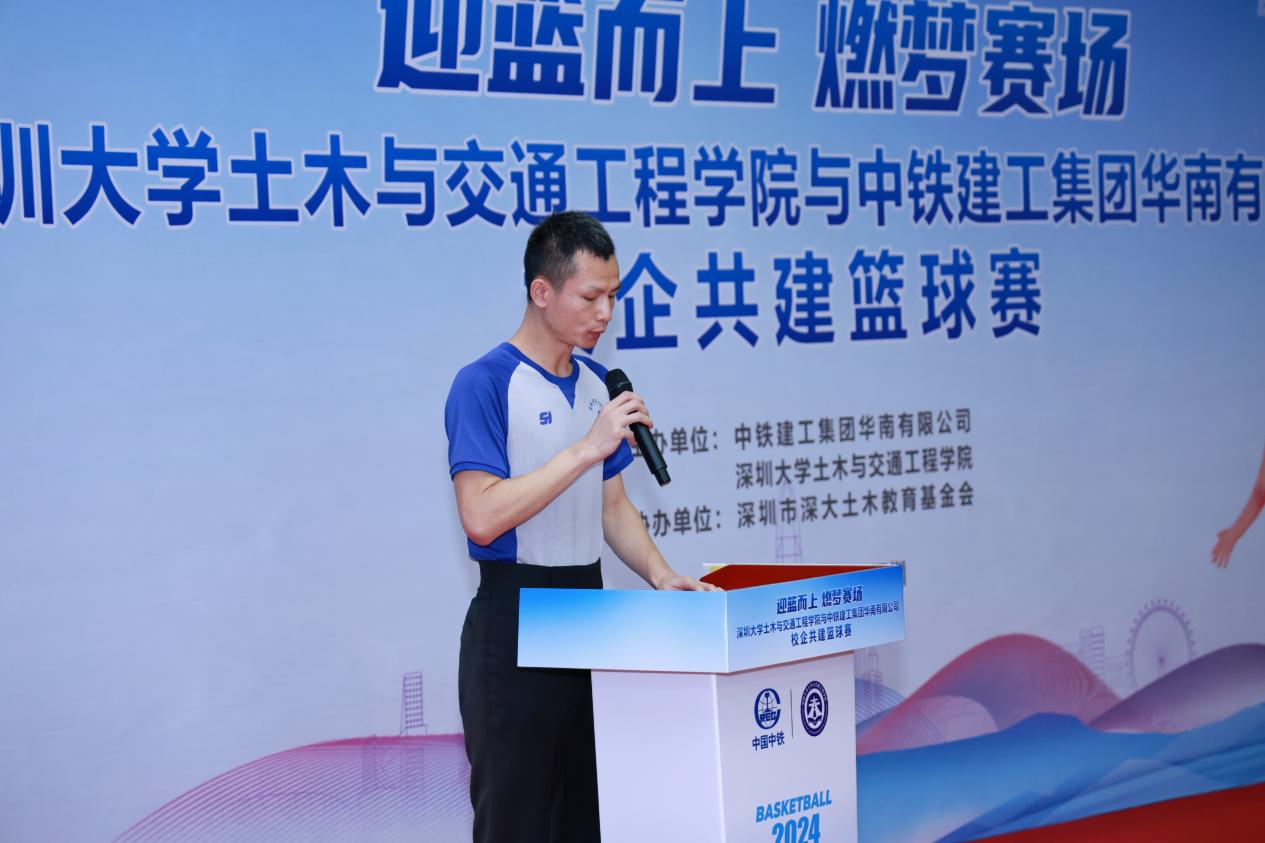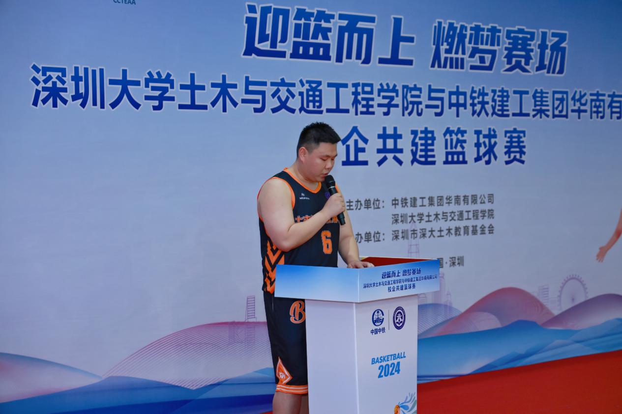 6月15日下午1时30分,一场激情四溢的篮球赛在深圳大学粤海校区南区运动广场室内篮球场即将拉开帷幕。深圳大学土木与交通工程学院党委副书记陈碧霞,中铁建工集团华南有限公司党委副书记、纪委书记、工会主席陆慧敏,中铁建工集团华南有限公司总会计师罗文彬,深圳市深大土木教育基金会秘书长丁小波等领导和嘉宾及四支双方球队共计60余人参加篮球开幕式。