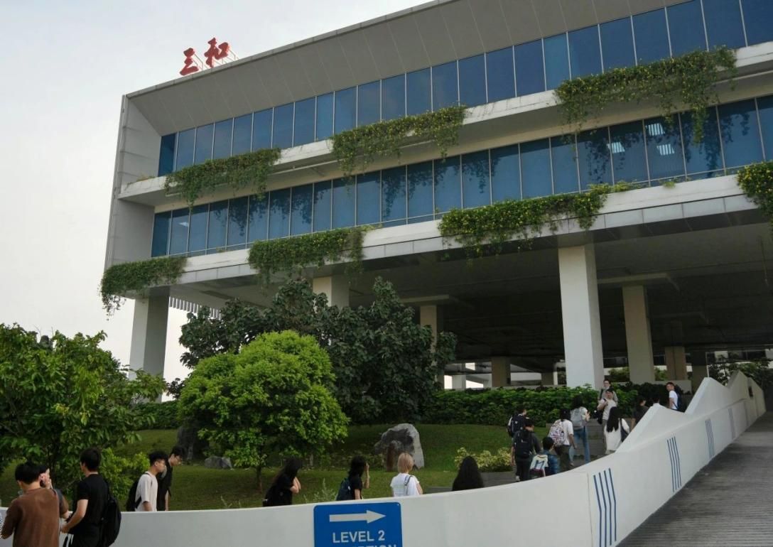访学团在三和智能中心(Samwoh Smart Hub)进行参观,三和相关负责人首先给大家介绍了三和环保大楼,该建筑使用了100%的再生混凝土骨料,这也是三和环保大楼的最大特色之一,荣获了新加坡建筑建设管理局绿色建筑标志——铂金奖。