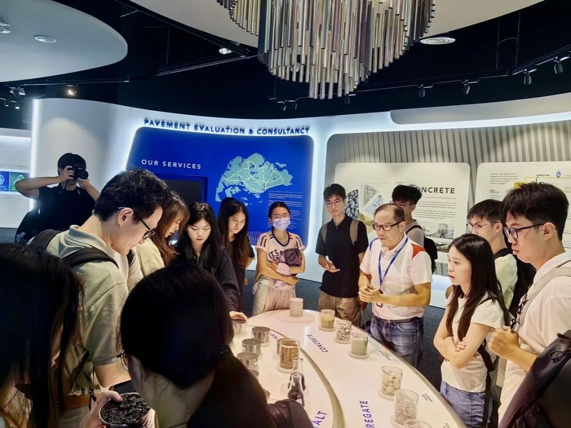 跟随负责人的讲解,访学团学习了新加坡的城市和基础设施建设、沥青、骨料、建筑和工业废物回收利用,了解了三和公司是如何参与和改进道路设施和机场建设,比如使用矿渣、粉煤灰取代水泥。此外,同学们还学习到三和公司先进的道路咨询和路面评估技术,与中国相似,两国都建立了类似的路面信息管理系统(PMS),用于集成和管理道路设施的各种数据。这些系统有助于长期规划和预算分配,还能提升维护效率和减少成本。