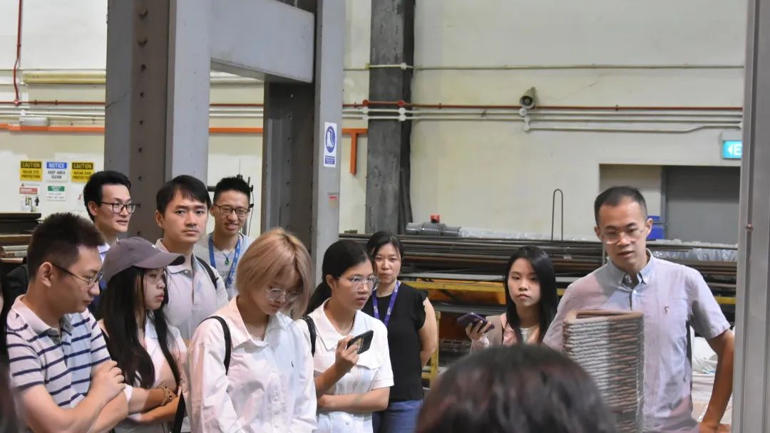 在新加坡国立大学土木与环境工程学院,访学团首站参观了土木工程结构实验室。这个面积超过1700平方米的实验室配备了先进的静态和动态力学测试及分析系统,以及多种量测传感器、数据采集仪和数据处理设备。