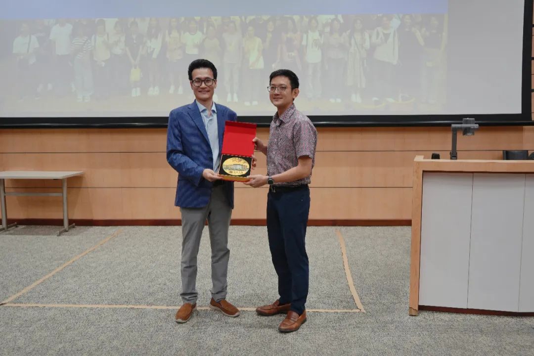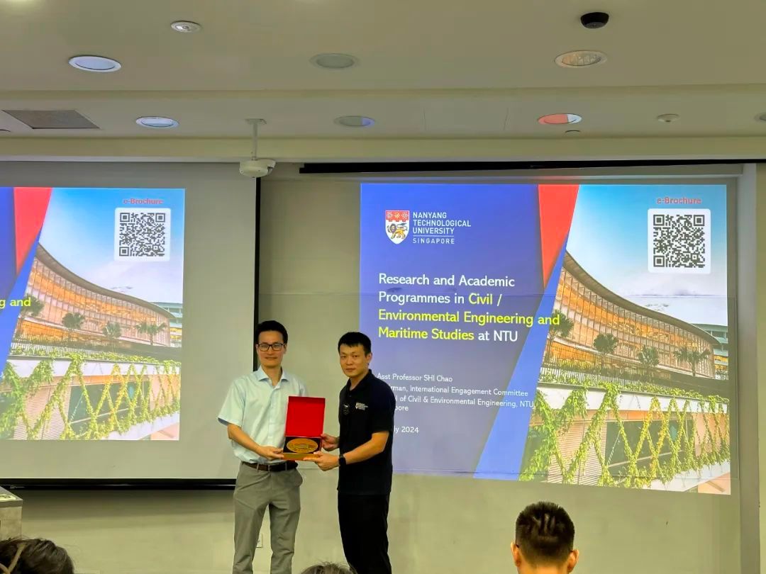 黄振宇老师代表学院将深圳大学校牌纪念品赠与南洋理工大学土木与环境工程学院。