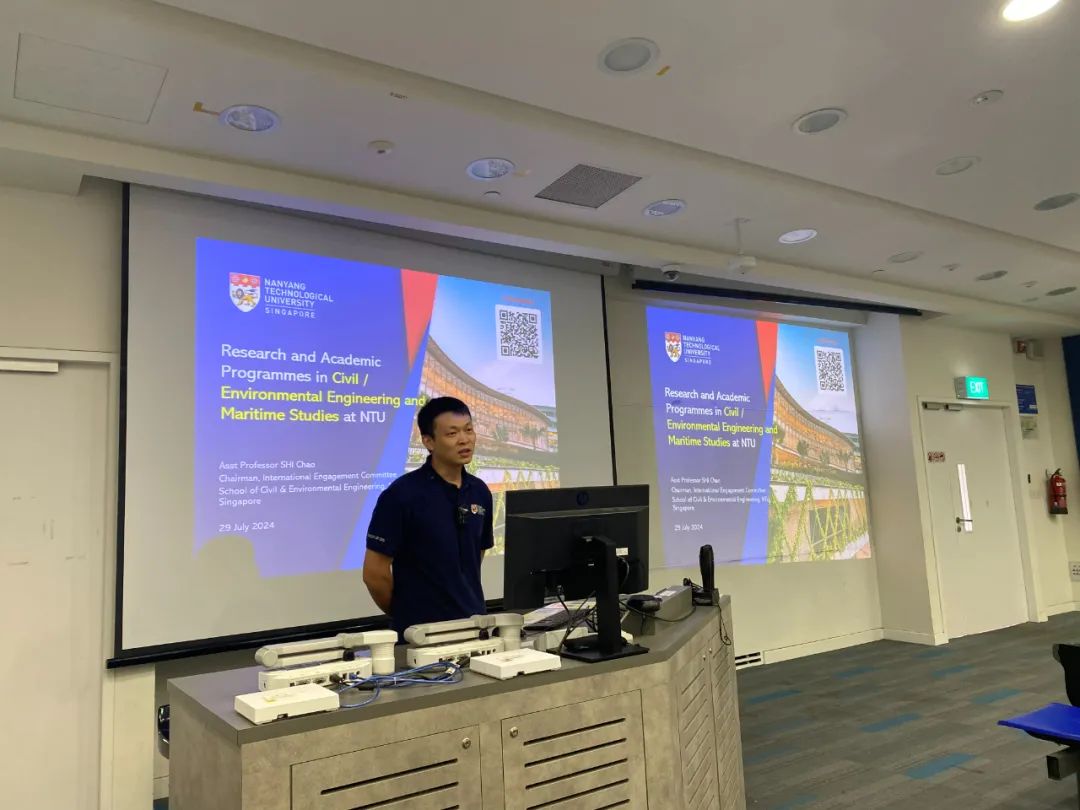 当天下午,访学团全体成员抵达南洋理工大学土木与环境工程学院开展座谈交流。该学院的助理教授史超老师与朱峰老师以极大的热情接待了访学团的到来。