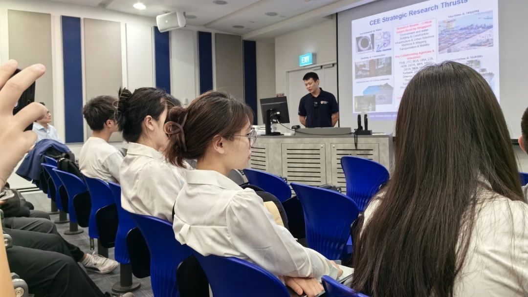 炎夏酷暑,烈日炎炎,却未能削减访学团学子们对知识的向往和热爱。7月29日,访学团在学院黄振宇老师的带领下分别到新加坡国立大学(NUS)和南洋理工大学(NTU)土木与环境工程学院交流学习,并到中国交通建设集团(CCCC)新加坡CR109项目部现场实地参观。
