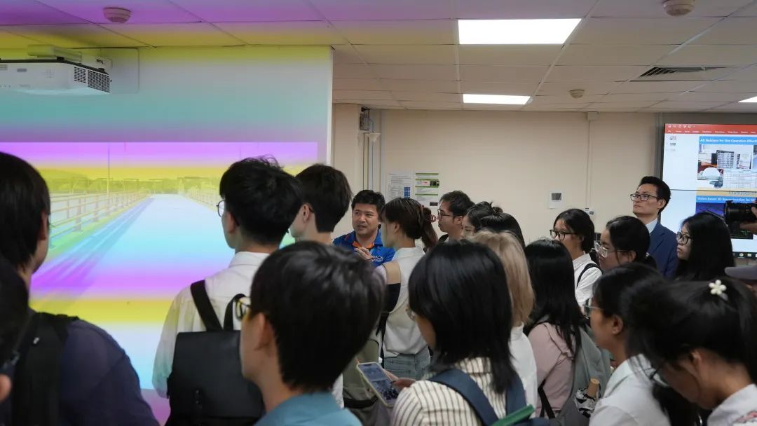 最后,在工程师Seow Soon Leong的带领下,访学团参观了土木与环境工程系的数字化实验室,探索了新加坡国立大学在土木和交通工程领域应用的最新数字化技术。特别是人工虚拟现实、3D扫描的创新应用,当我们带上所配备的眼镜时,就可以获得虚拟现实的实际场景的体验,为工程师在工程设计、工程建造前和后期现场监测提供了全新的视角和解决方案。