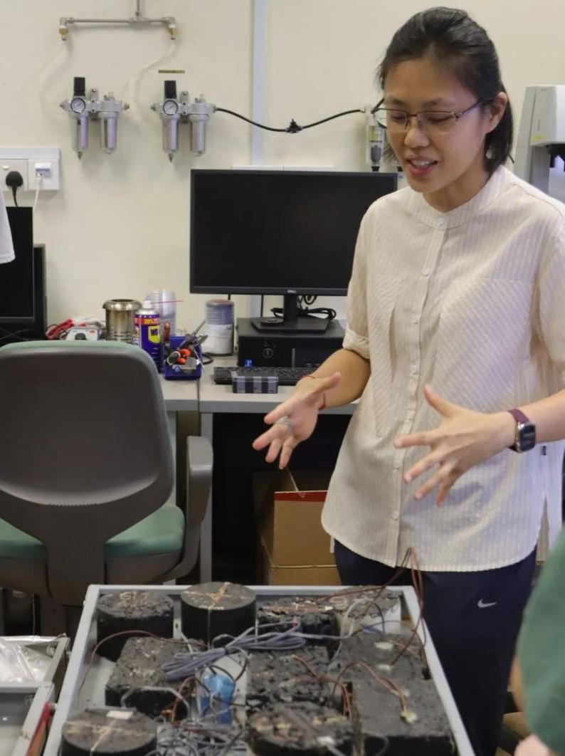 在张漳敏博士的详细介绍下,同学们深入了解了混凝土材料的水化、成分分析和电镜分析测试设备,以及在新加坡热带高温高湿环境下开展混凝土材料的力学和耐腐蚀性能的必要性。