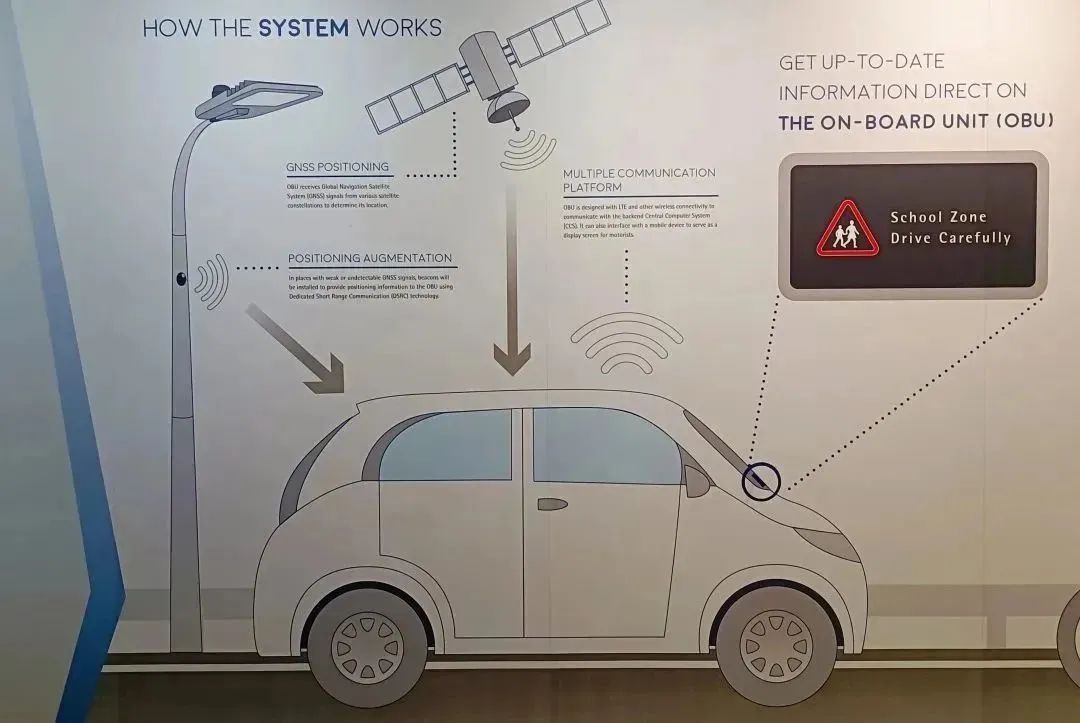 接着,讲解员还介绍了新加坡未来的交通管理系统。他提到,新加坡将采用全球导航卫星系统(GNSS)技术,为驾驶者提供一系列丰富的功能,包括提供全面准确的最新资讯及其他增值服务。
