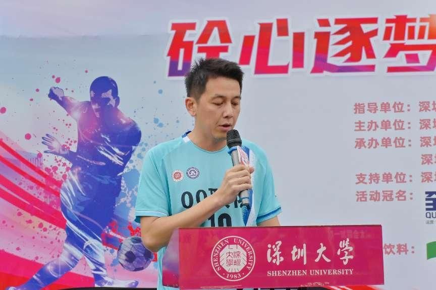 运动员代表、2000级校友冯云在发言中表示,自己能够在深圳大学40周年校庆之际回到母校,参与学院体育节足球赛而倍感荣幸。他表示,在接下来的比赛中,将与全体运动员一起以饱满的精神积极参赛,弘扬体育竞技精神。