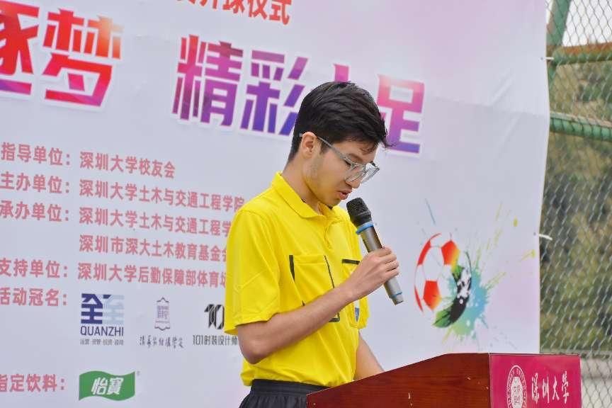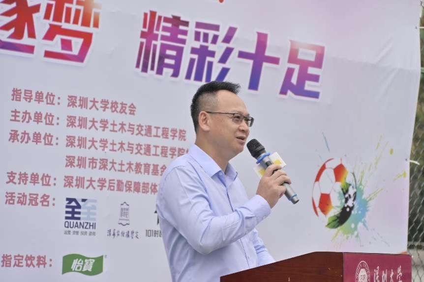 最后,曾楚恒校友代表深圳全至智业集团向深圳大学 40周年校庆和土木与交通工程学院第三届校友体育节“全至杯”足球赛开球仪式表示热烈祝贺!祝愿本次比赛圆满成功!
