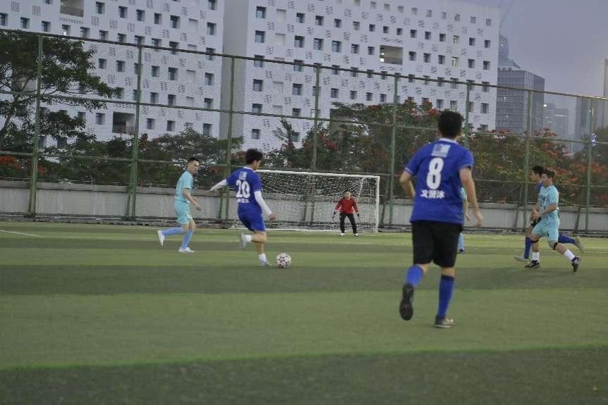 足球赛火热开赛,参赛双方进行激烈角逐,一次次带球、传球、射门,让大家感受到了足球对抗的魅力。