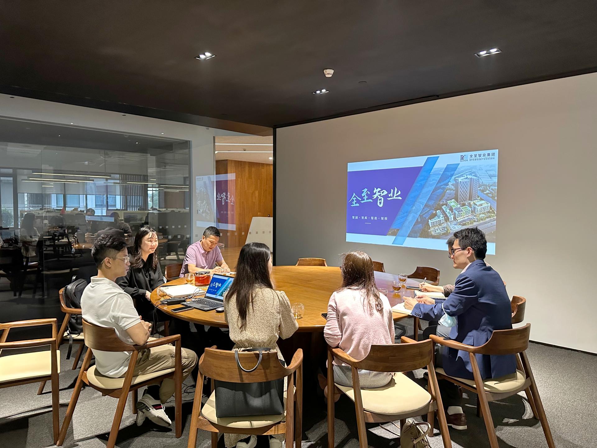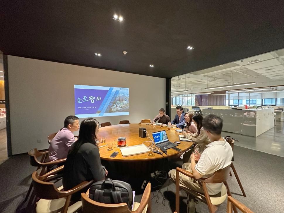 参观完后,双方进行座谈交流环节,一同观看了全至智业集团的企业宣传片。