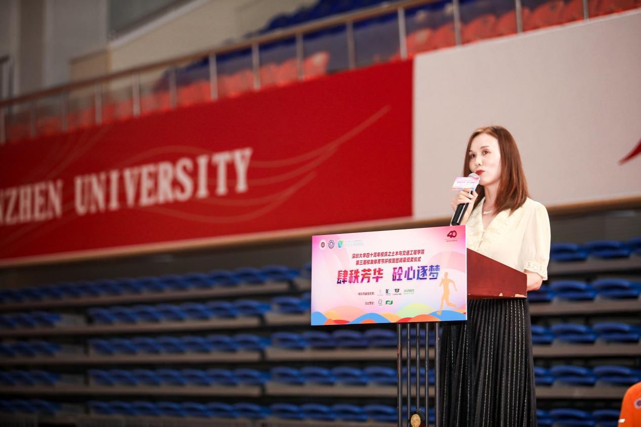 在本次闭幕颁奖仪式上,学院党委书记左英姿代表学院致辞。她提到,举办校友体育节是土木与交通工程学院的光荣传统,至今已成功举办了三届。校友体育节作为深圳大学40周年校庆系列活动的重要组成部分,对提高师生校友的身体素质、焕发精神风貌、推动全民体育健身运动的开展,促进学校体育文化和精神文明建设等方面都发挥了十分重要的作用。