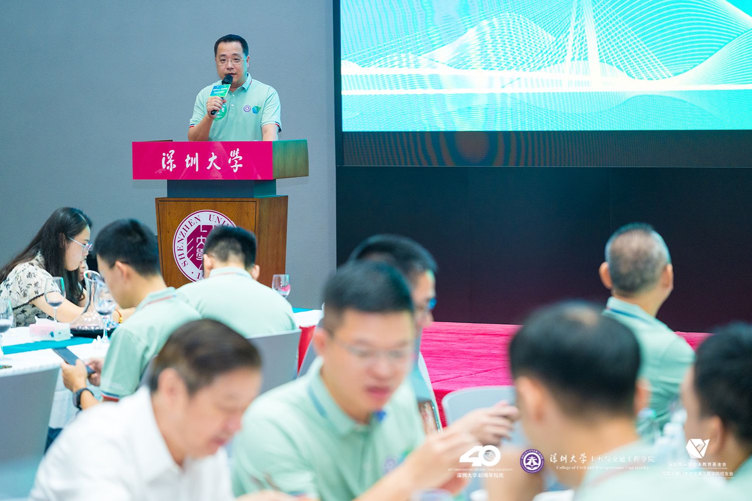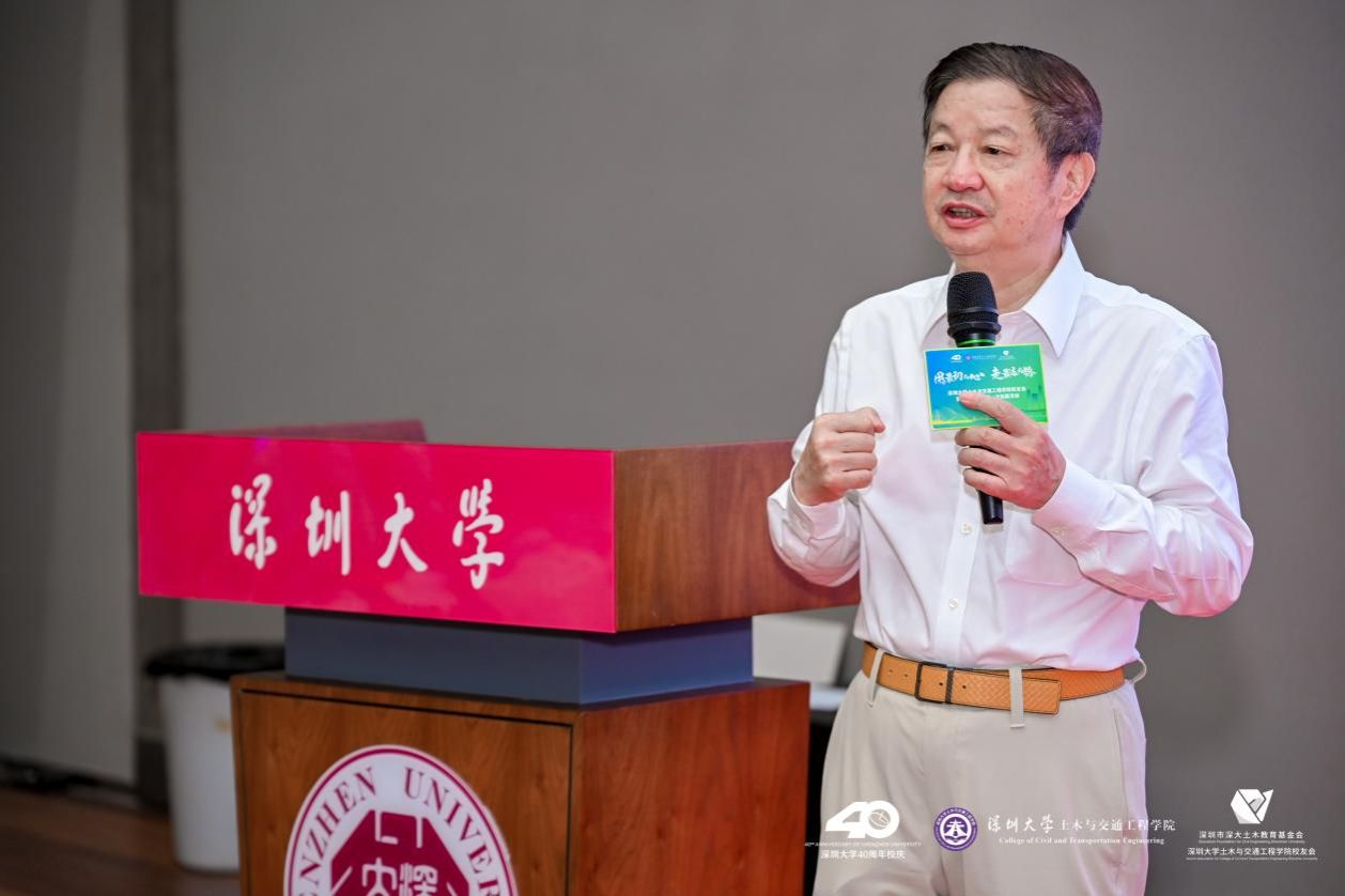 陈湘生院士回顾了深大和学院的历史渊源,向校友们介绍了学院的专业发展、师资力量、学术科研平台以及近几年来取得的科研成果等情况。