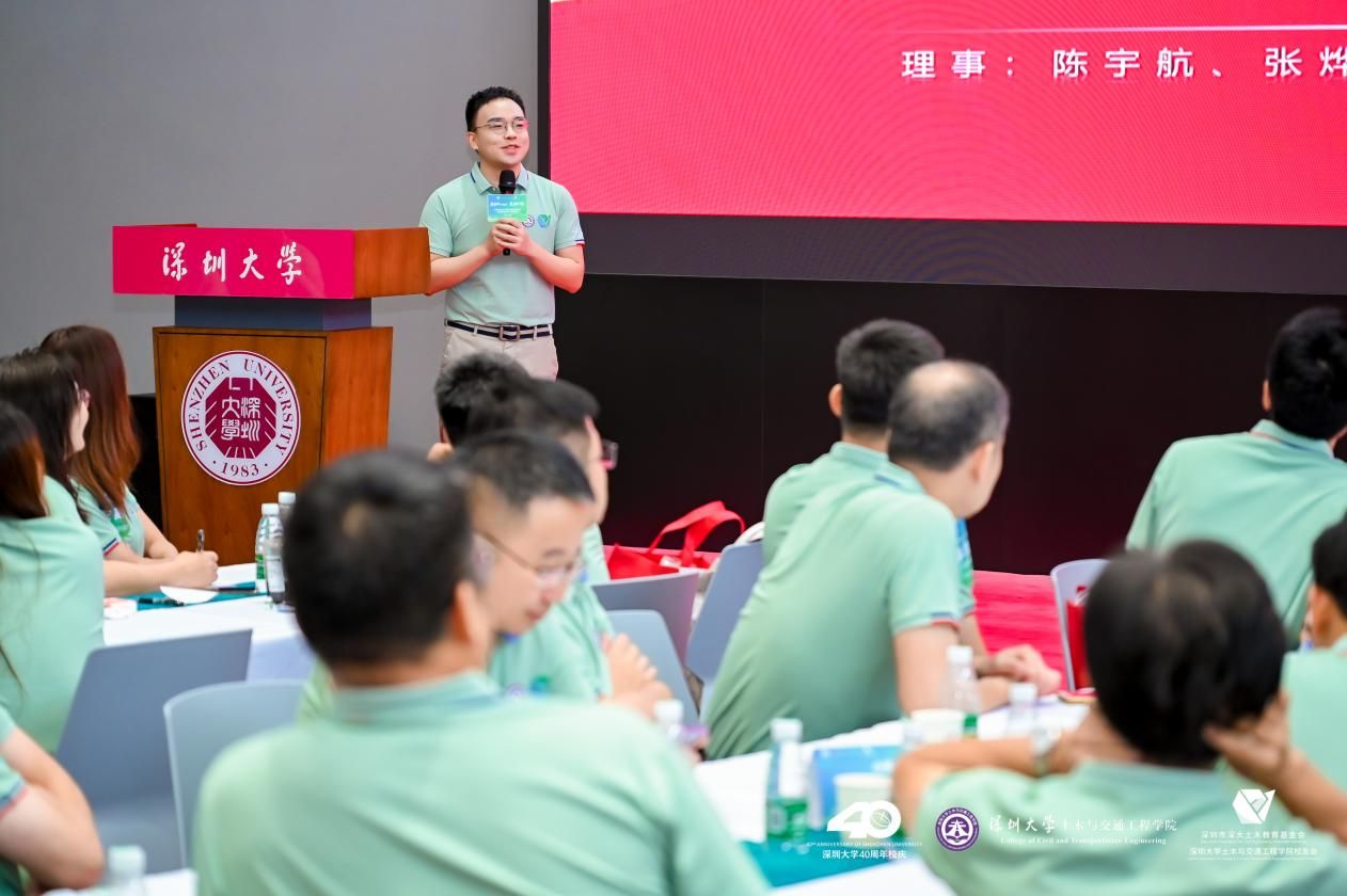 丁小波秘书长发言,他首先欢迎参加本次活动的所有领导和第五届理事会成员。他表示,校友会的发展和进步离不开理事们的支持和奉献,今年9月份即将迎来理事会换届大会,期待第五届理事会能够凝心聚力,共同谱写深大土木校友会的新篇章!