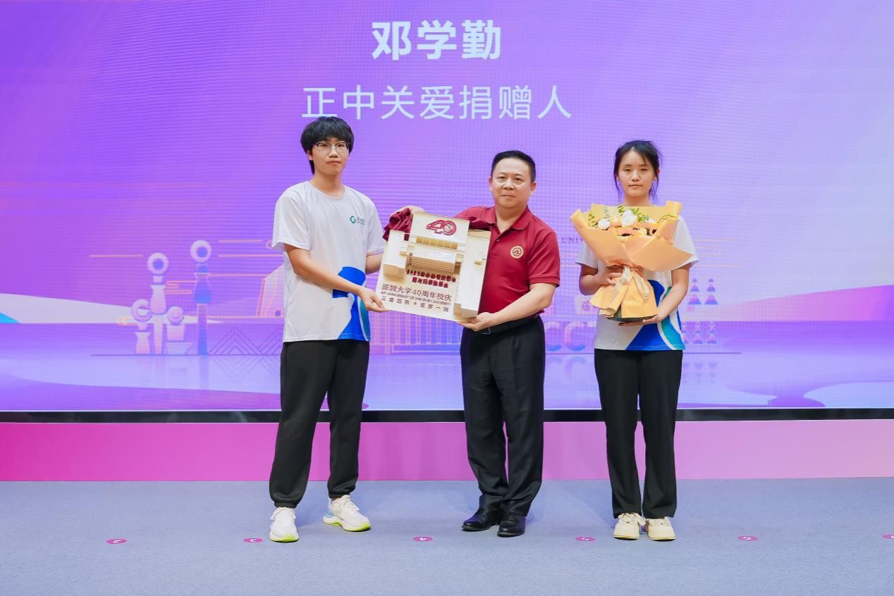 活动仪式上,正中集团董事长、1985级校友邓学勤为受资助学子颁发资助证书。