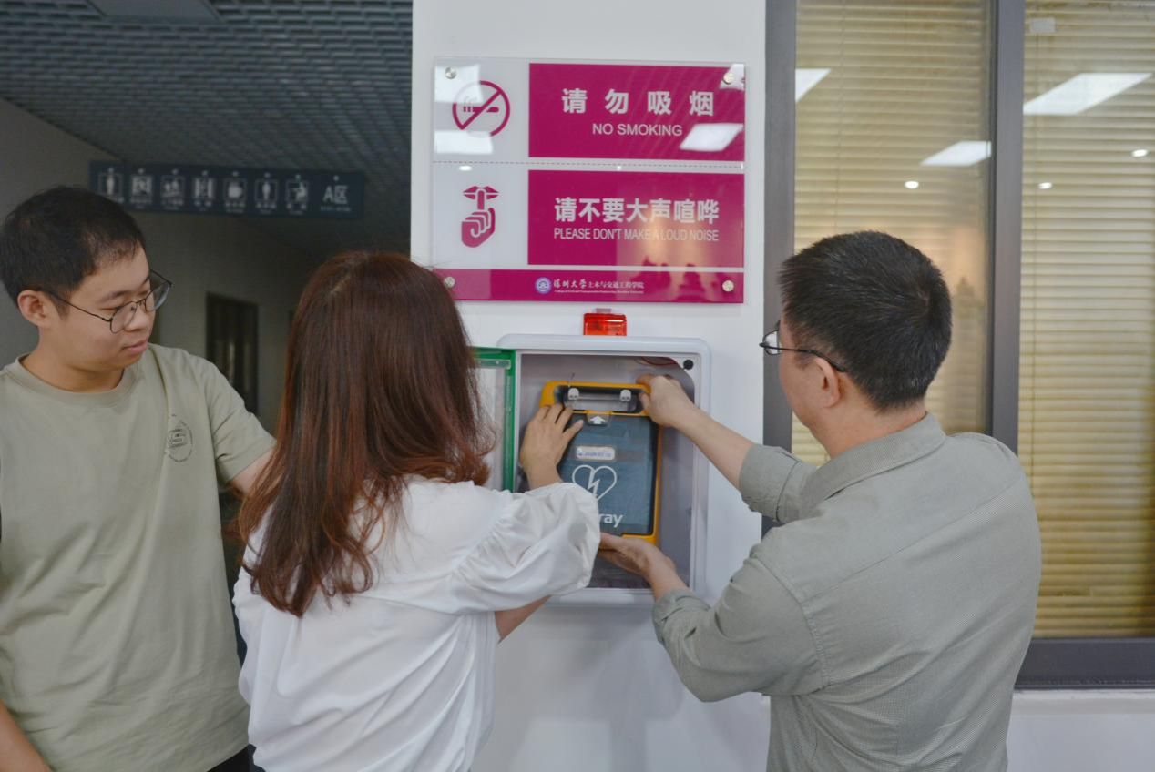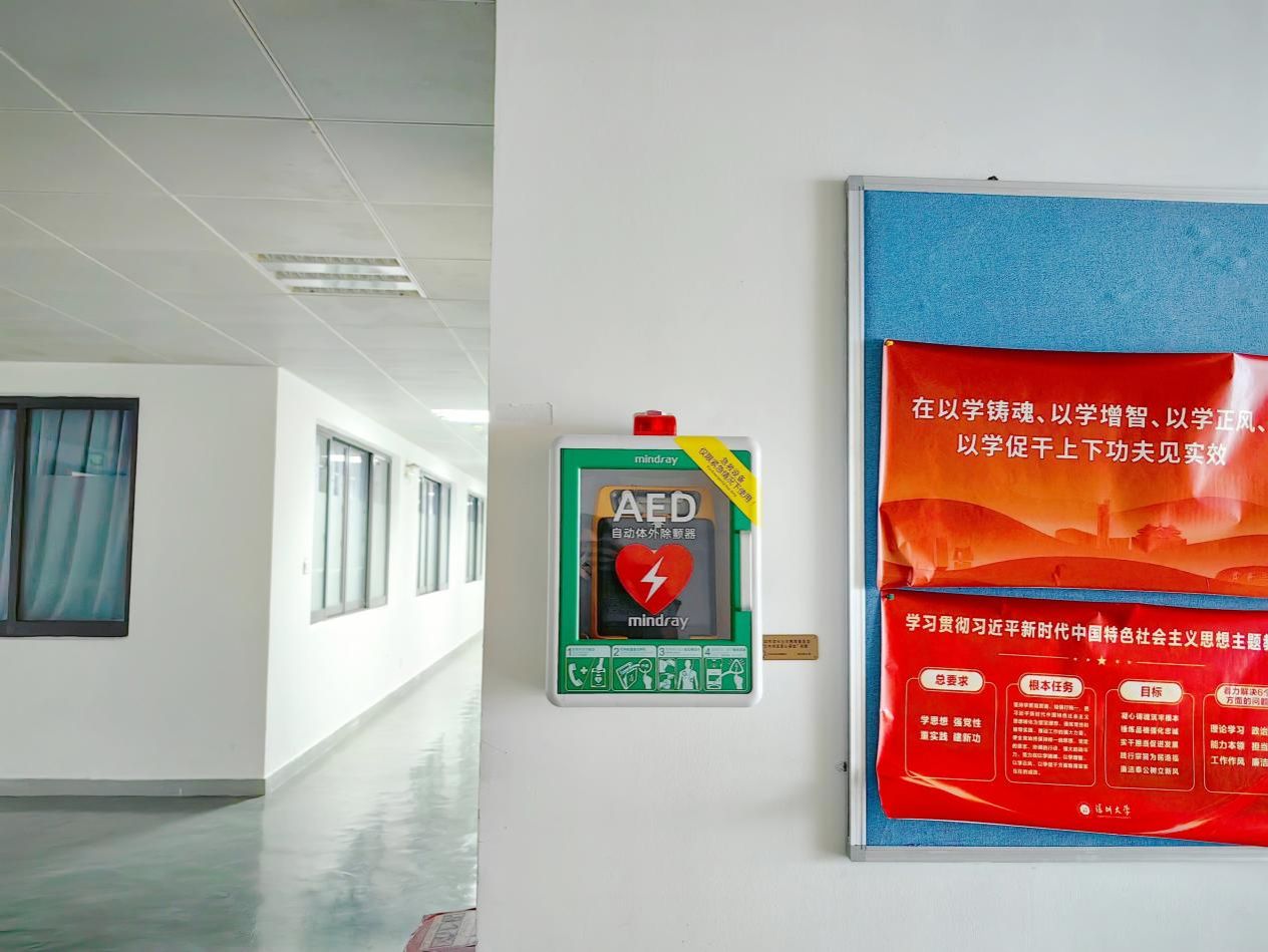 当天中午12:40,大家在致工楼一楼共同见证了AED的安装仪式。这两台AED设备,是由基金会“土木校友爱心基金”捐赠至学院使用的。未来,它们将为学院师生保驾护航。