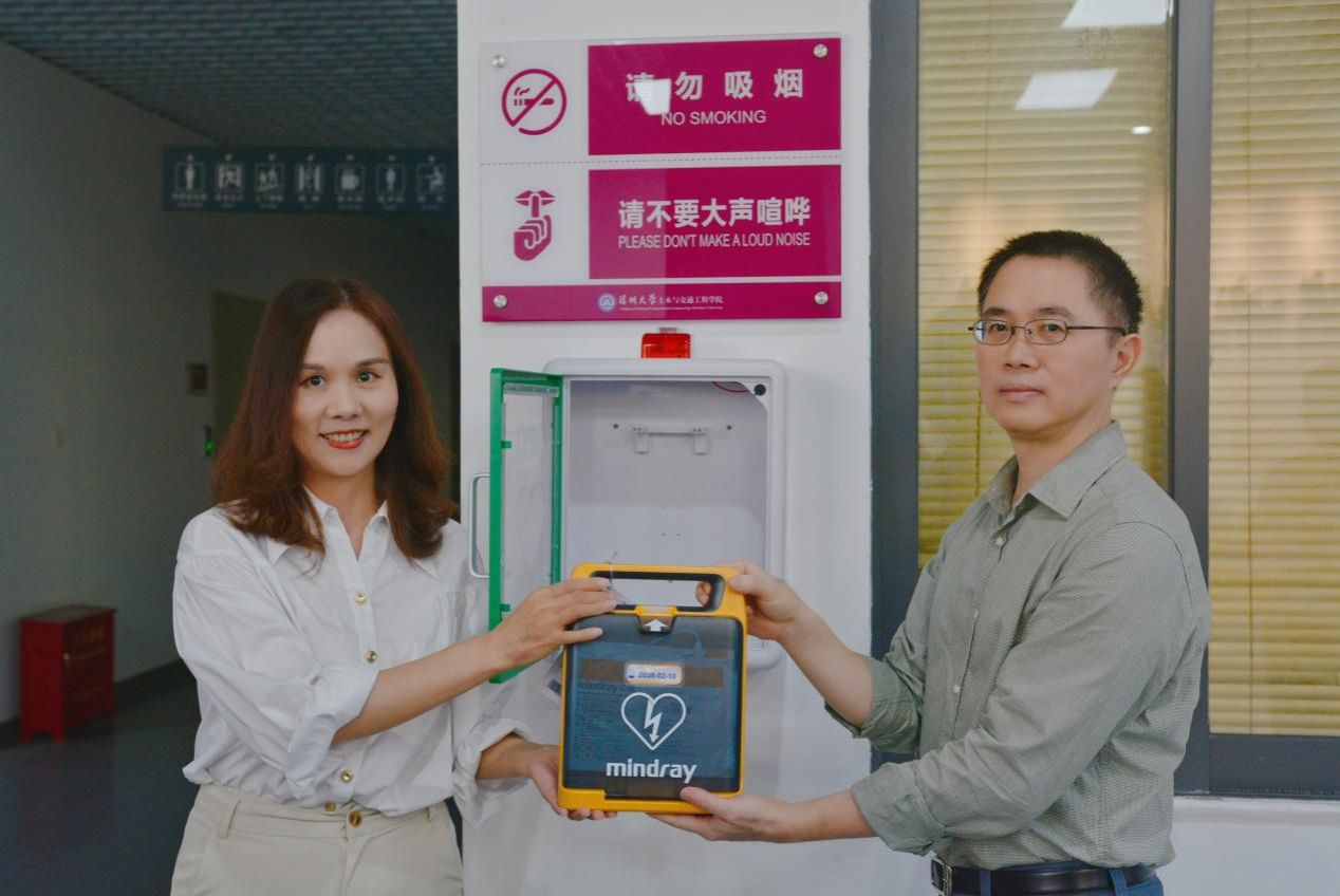 在讲话中,陈碧霞副书记说到,学生和老师的生命安全是学院非常重视的一项工作内容。深圳市深大土木教育基金会“土木校友爱心基金”在过去资助了学院很多师生校友,今年爱心基金多次探讨新的资助方式,最后决定向学院捐赠两台AED设备,为学院师生安全提供保障。