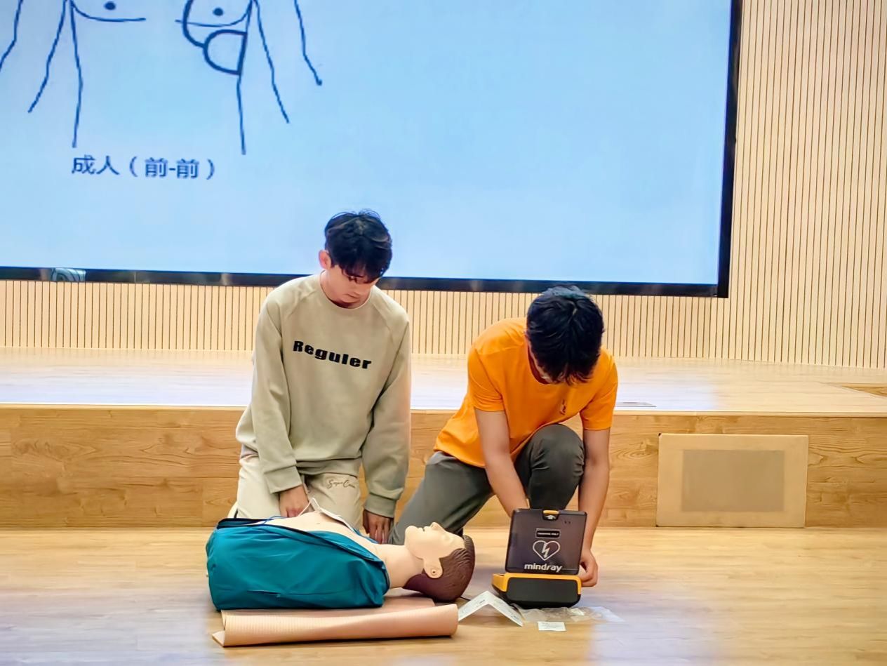 此外,现场还进行了在突发事件中的急救和AED使用模拟演练。