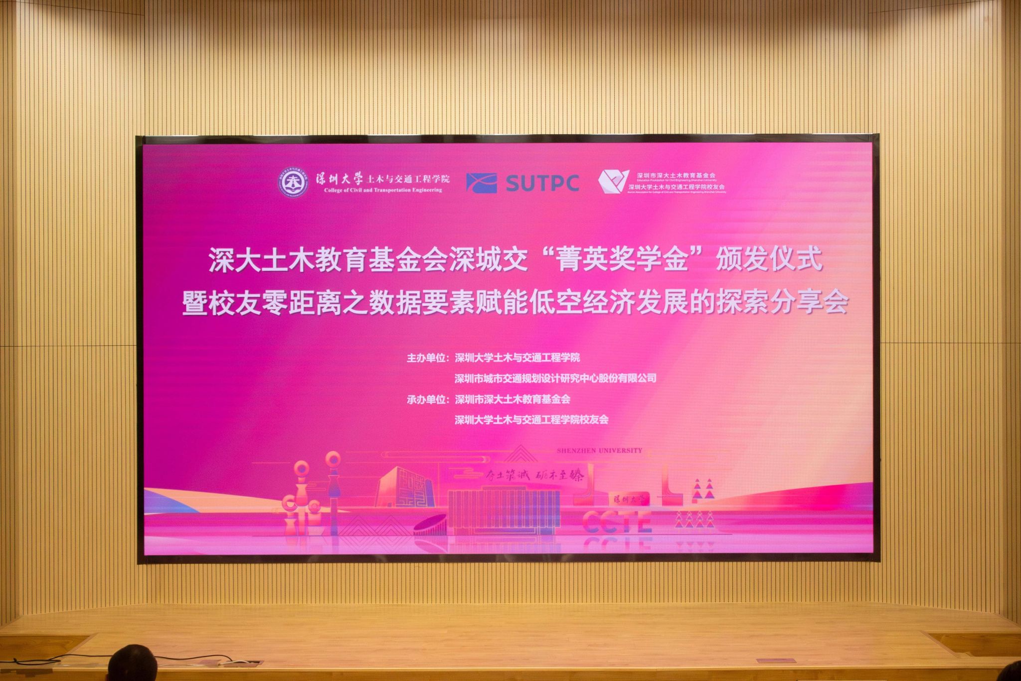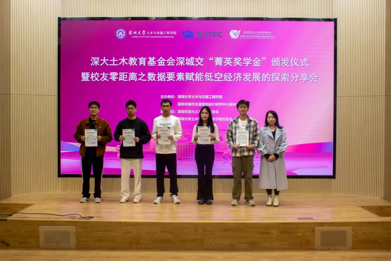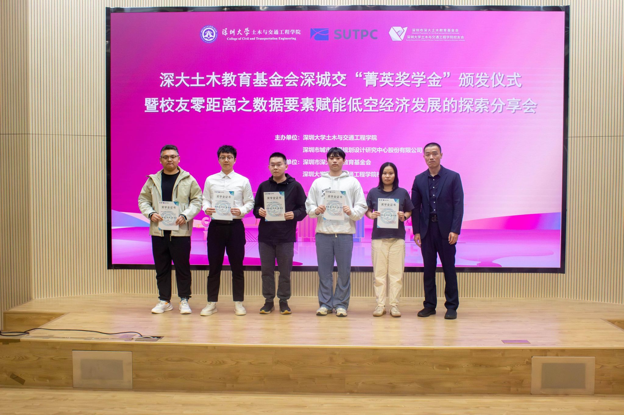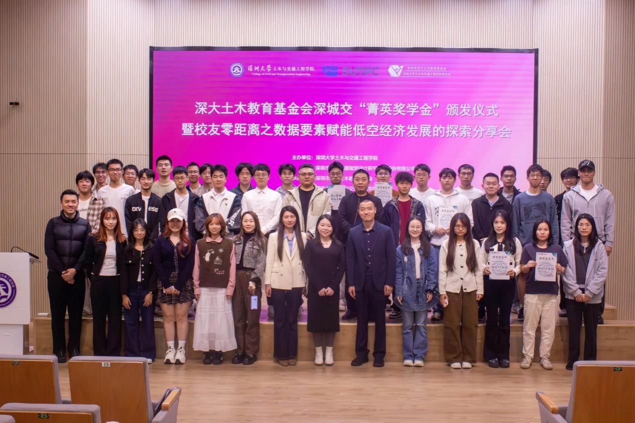 2025 年 11 月25 日晚,深圳市深大土木教育基金会深城交 “菁英奖学金” 颁发仪式暨校友零距离之 “数据赋能低空经济高质量发展的探索” 分享交流会在深圳大学致工楼A431报告厅成功举办。