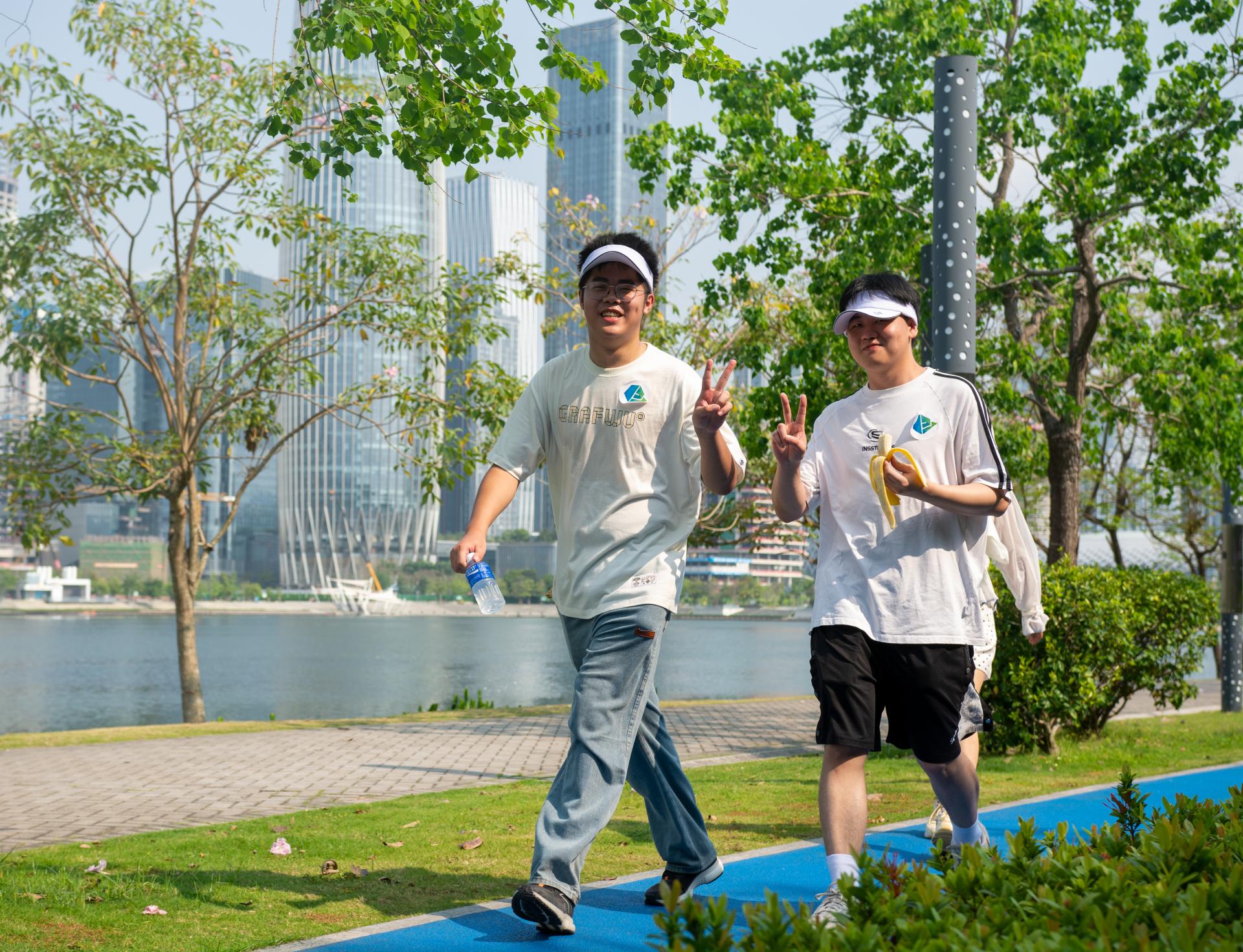 热情的深大土木人或奔跑,或漫步在美丽的深圳湾畔,一步步向前迈进。迎面的春风是清凉的抚慰,滴落的汗水是奋进的证明。