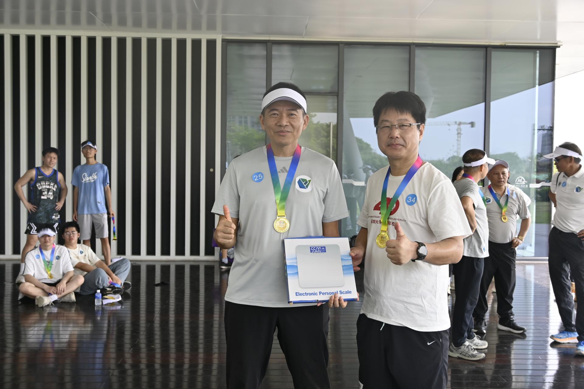 学院党委副书记陈碧霞为前五名的徒步队员颁奖。