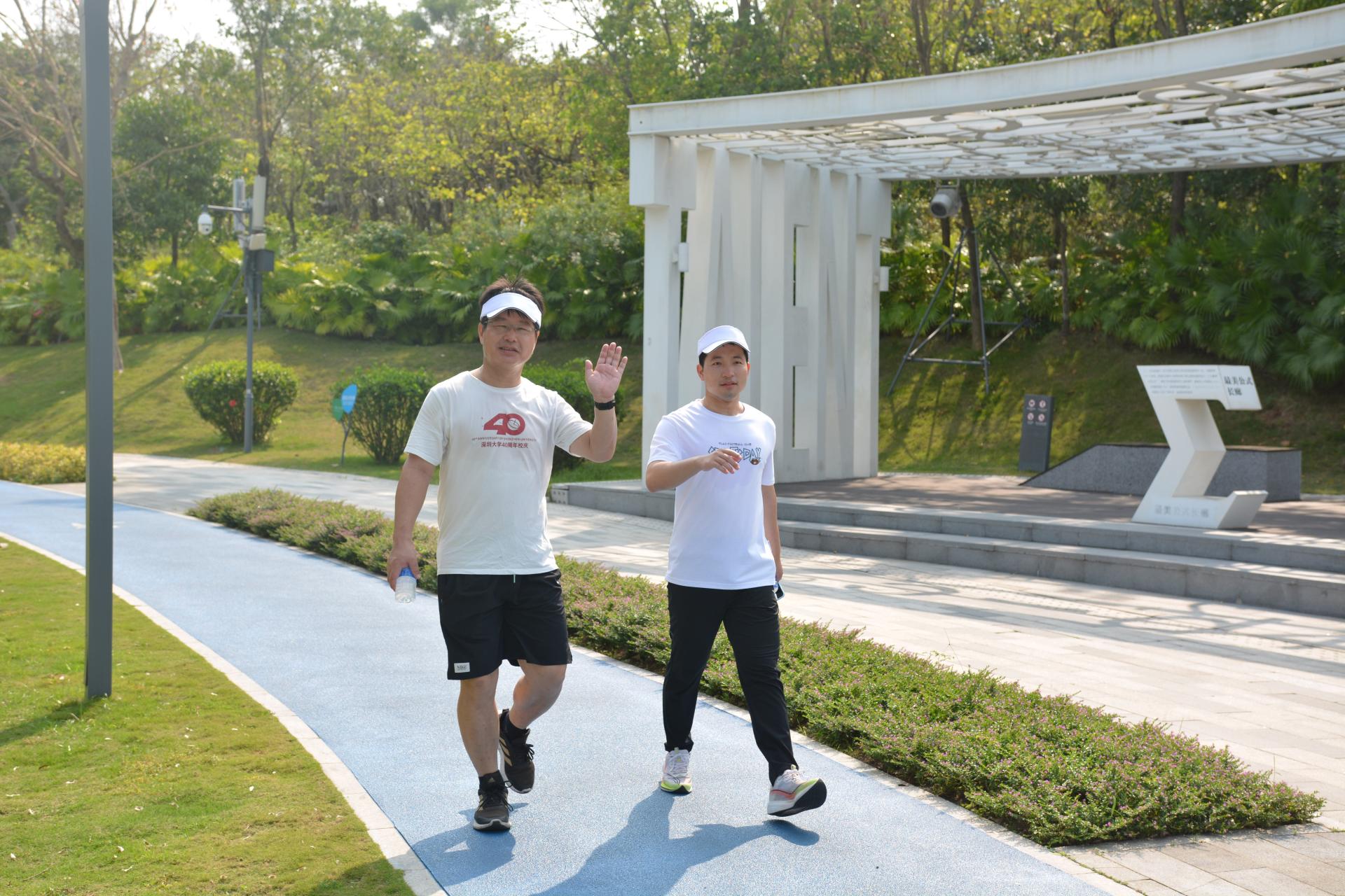 徒步正式开始!从深圳人才公园求贤阁出发,途经院士桥,3公里后折返回到人才公园求贤阁集合点,全长约8公里。