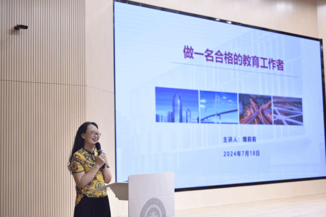 隋莉莉老师以《做一名合格的教育工作者》为题,从她入职深大、深大生活、成绩荣誉、感恩祝福四个方面分享了她近二十年来的工作故事和人生感悟。