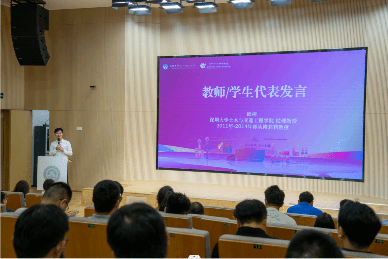 随后,土木系主任周海俊教授、隋莉莉老师的学生现已成为学院教师的邱桐博士、校友代表陈武雄依次上台发言。