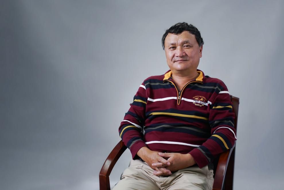 王家远老师在办公楼顶拍摄,背景是正在施工的演汇中心