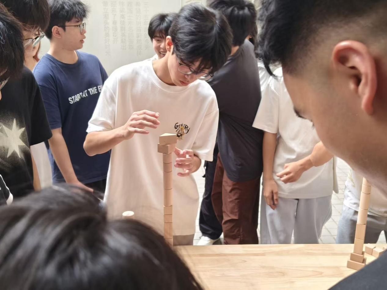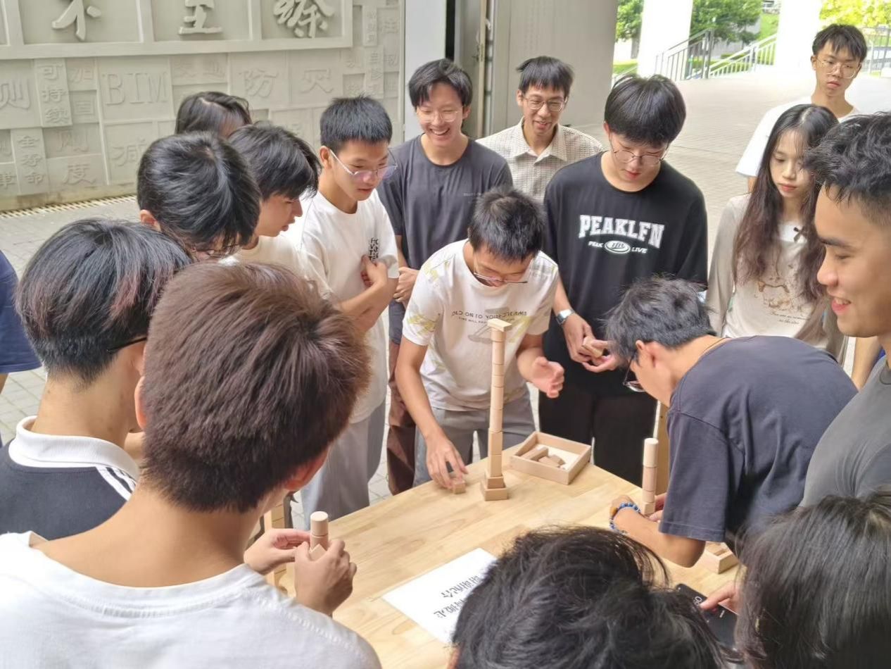 活动在“喝醋版谁是卧底”中拉开序幕。成员们在品尝含醋饮品的同时展开逻辑表述与推理,现场反应生动,气氛迅速升温,陌生感随之消融。随后的“积木垒高”挑战,充分展现了“土交人”的专业素养。各小组在5分钟内协同搭建高塔,将力学知识与结构优化理念融入实践,在默契配合中完成对高度与稳定性的双重考验。
